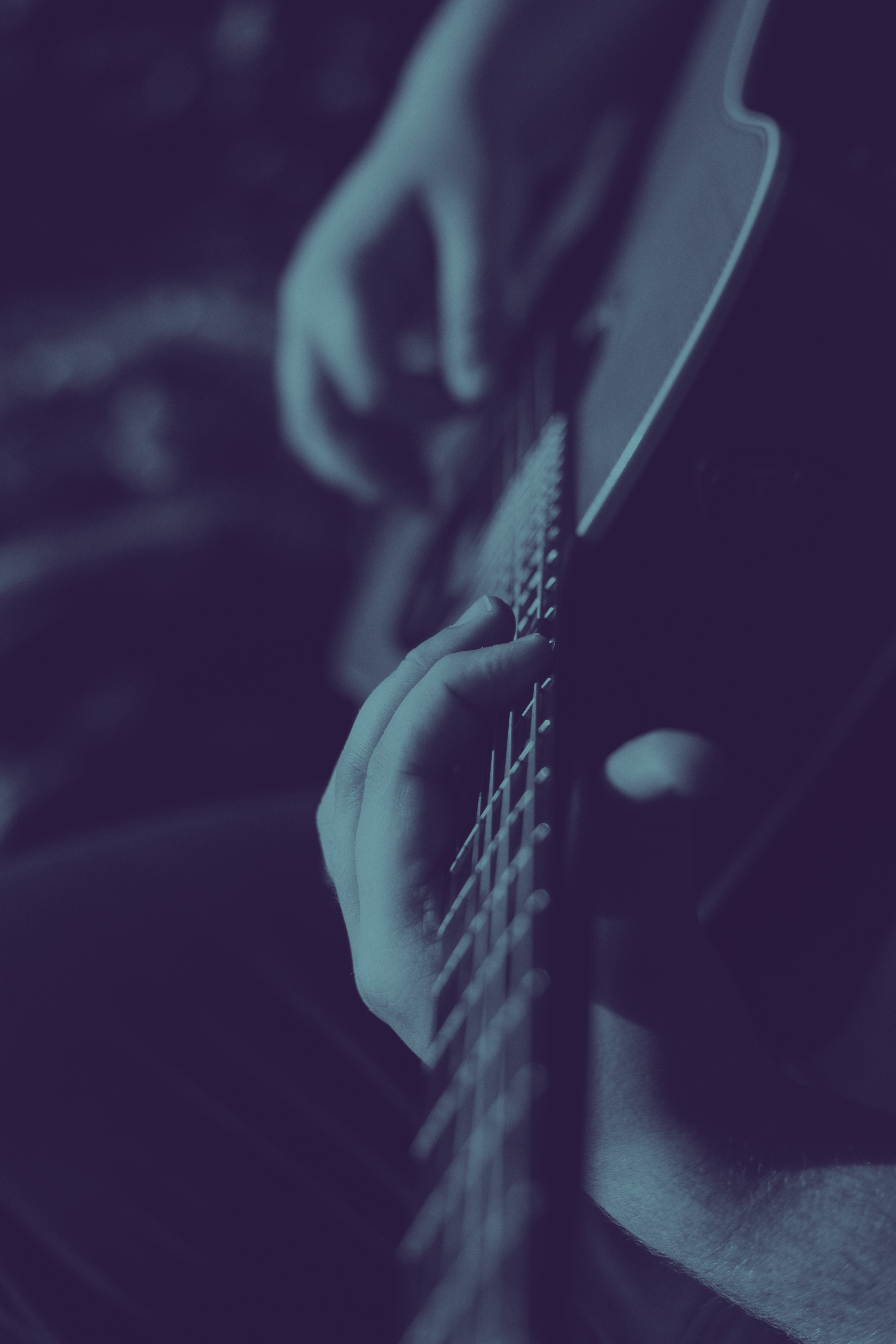 To support this moody, serious tone, we utilized a deep purple and blue duotone treatment on the photography. This allows the crisp white typography to dominate the hierarchy and create visual depth.